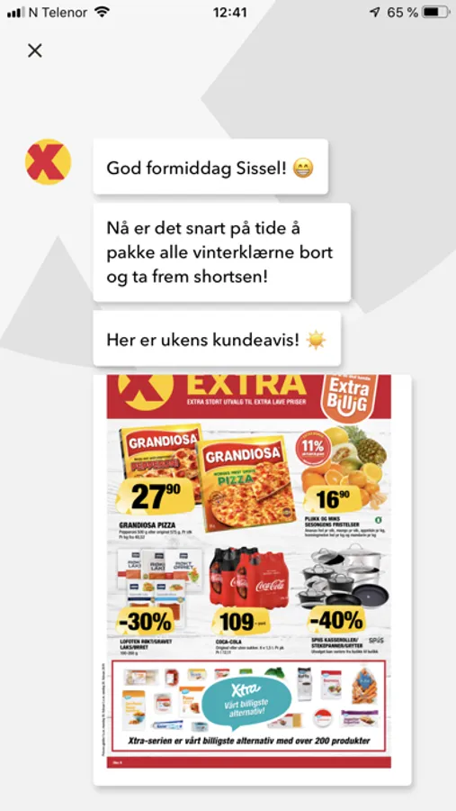 • Få tilgang til denne ukens, og neste ukes kundeavis