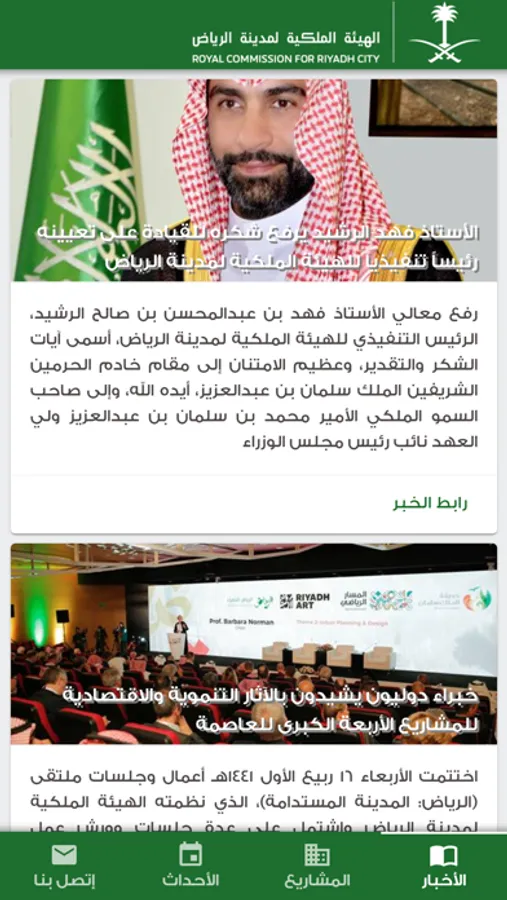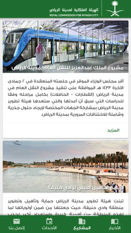 The official application of the Royal Commission for the City of Riyadh to display news and projects