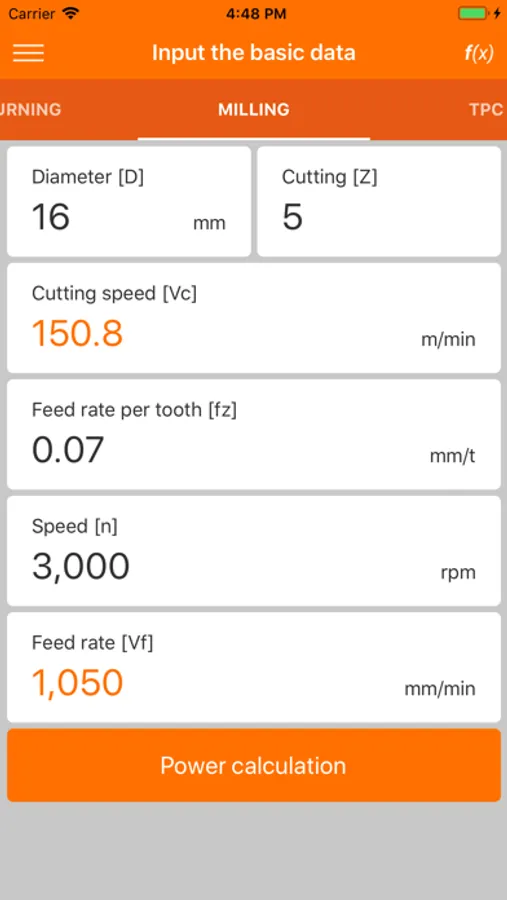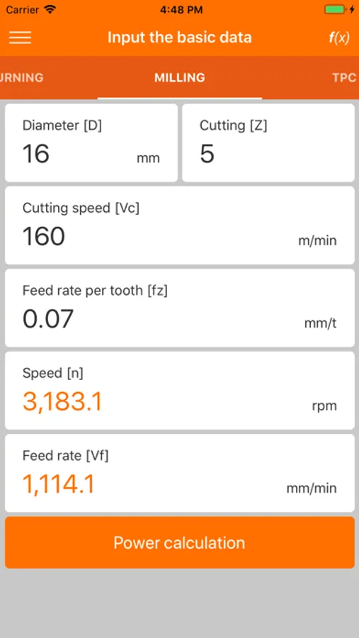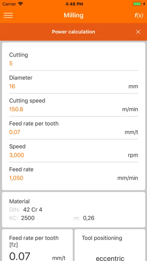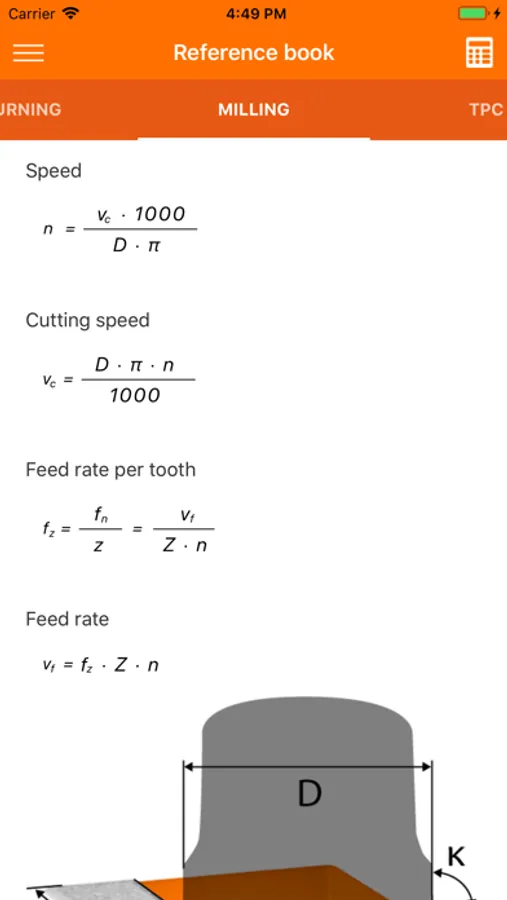 You can calculate the speed and feed rate for the production methods of turning, drilling and milling by entering the corresponding parameters, as well as subsequently readjusting them to the machine parameters.