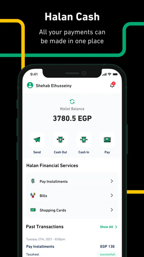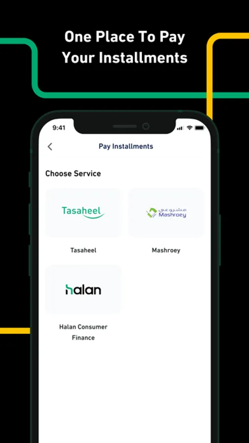 Installment Collection: pay your Tasaheel loan installments, your insurance installments, or your product installments from Mashroey with Halan Cash.