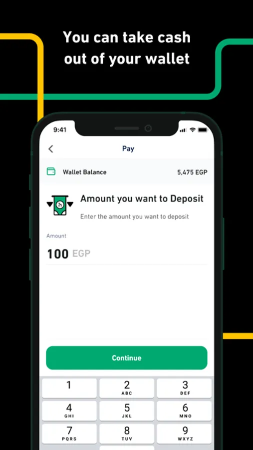Money Transfer: transfer money to anyone with a mobile wallet, anywhere inside Egypt, at any time.