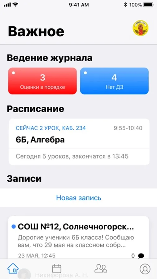 Первая версия приложения позволяет эффективно вести ежедневную образовательную деятельность: выставлять оценки, выдавать домашние задания, отслеживания собственное расписание.