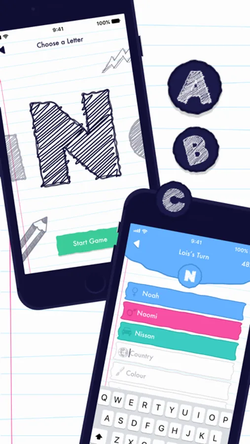 Shake your device to choose a letter at random, each answer must begin with the chosen letter (e.g. Letter A = Boy's Name 'Andrew', Animal 'Aardvark' etc). Want to continue the game with the same categories? Simply click continue and re-shake to choose your next letter.