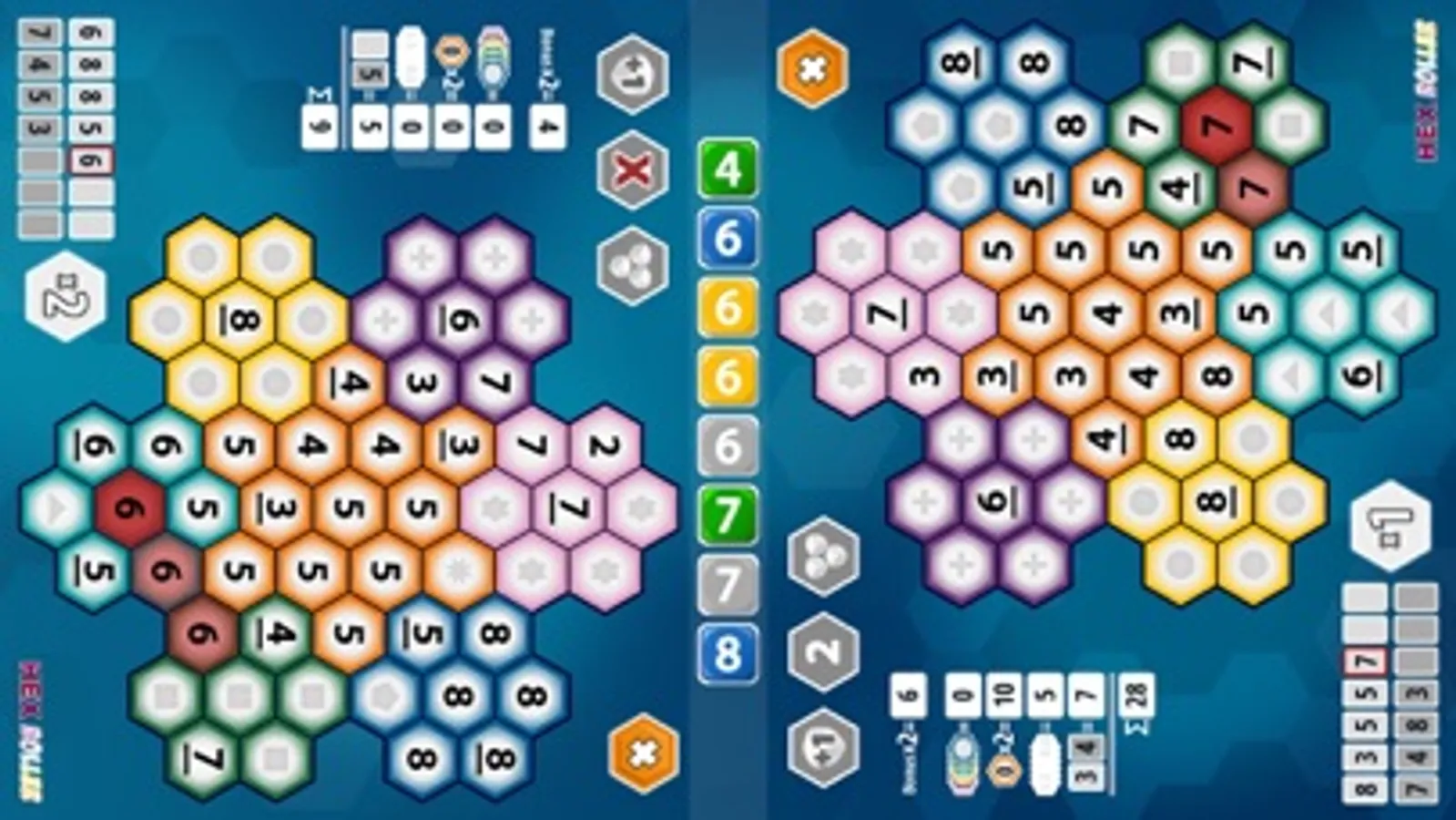 In this fast and tricky roll-and-write game each player attempts to place the rolled numbers in their hex grid the best, to fill up areas and to reach special targets as connections and straights.
