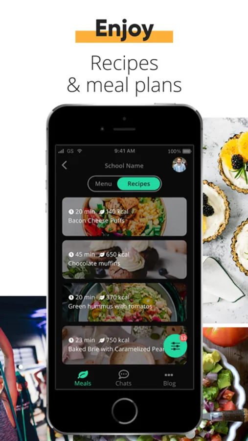 Recipes and nutrition plans, calorie calculator inside the app. Everything you need to be fit and feel well