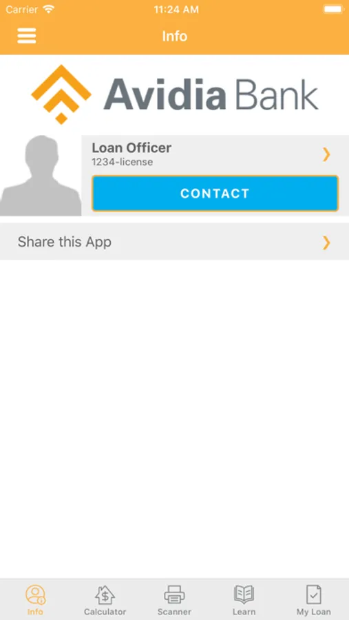 • Easily access contact information for your Avidia Loan Officer and real estate agent and share this information with your family and friends.