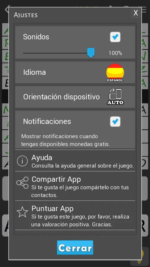 Pulsa también sobre la bombilla para activar o desactivar las ayuda de letra y palabra.
