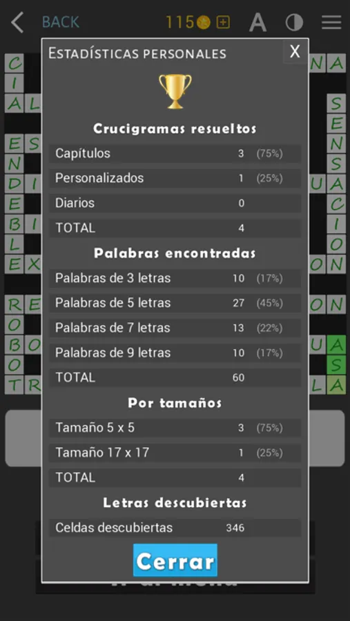 Cada vez que resuelvas crucigramas conseguirás monedas.