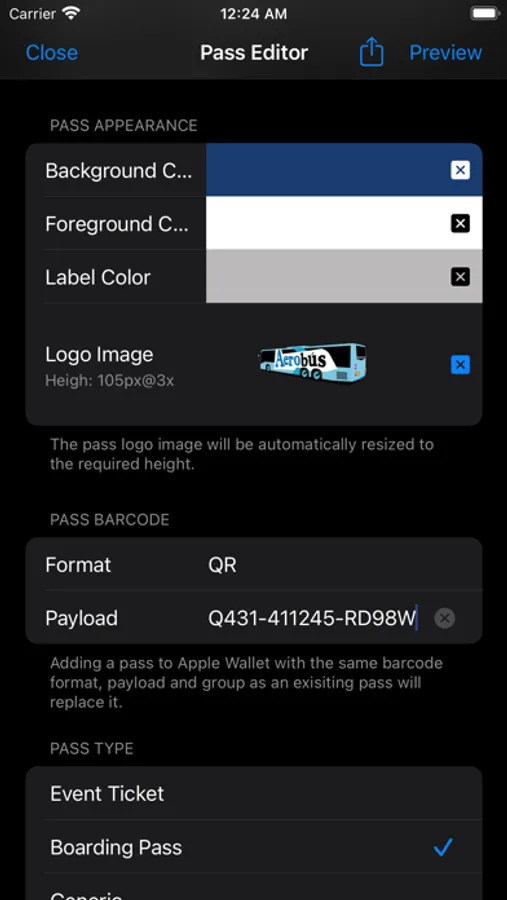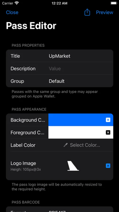 • On iPadOS, as Apple Wallet is not available MakePass will allow you to preview the pass and share or save the generated pass as a file instead of adding it to Wallet.