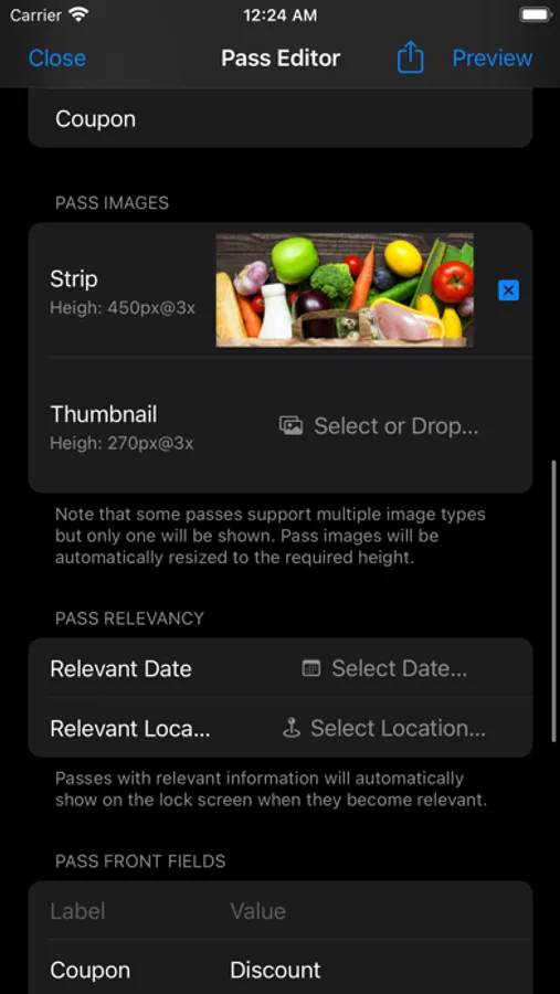 • Background, strip and thumbnail images are not supported on all pass types. Note that background images are automatically blurred by Apple Wallet and that some passes while supporting multiple image types cannot include all types at the same time.