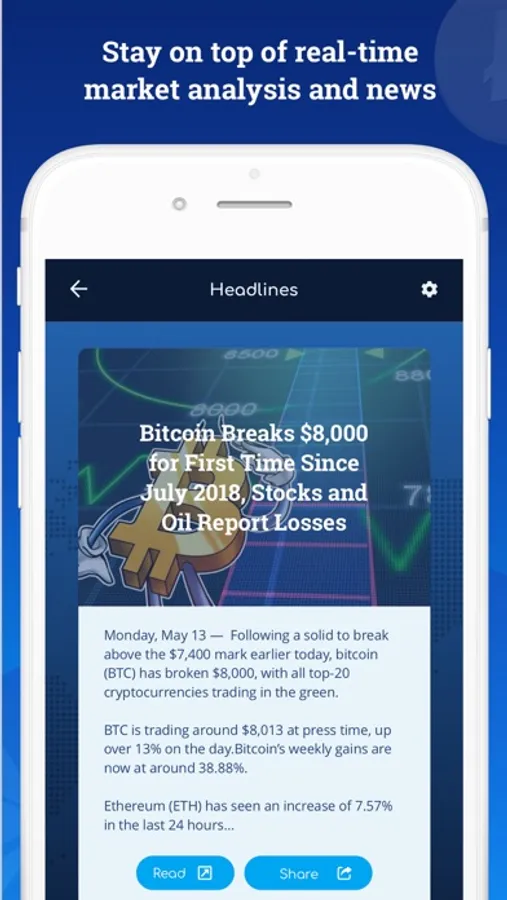 - News: Access aggregated news from the world’s top crypto news sources, organized by currency.