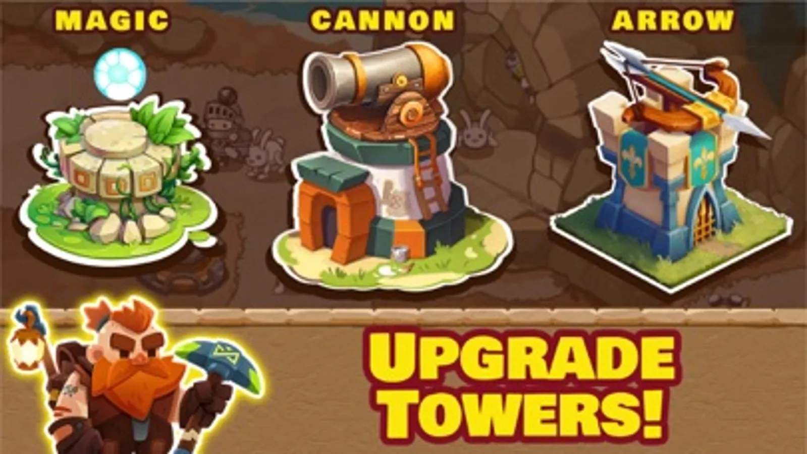 Follow brave warriors on their quest to cleans the kingdom from evil monster that are attacking peaceful realm. Build new and powerful towers, fight for people and become their hero. Command arsenal of various abilities and use them smart to destroy your enemies.
