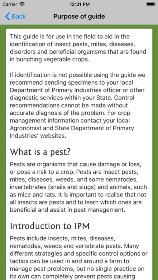 An interactive key and field guide for the identification of insects pests, beneficials, diseases and disorders in Australia.