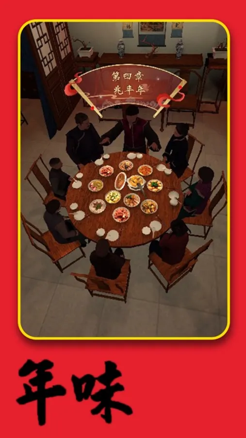 味》APP,通过展现一个普通的四合院之家在除夕那一天的生活,向大家拜年。