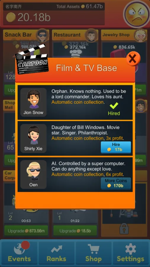 - Hire NPCs to be your CEO and let them collect coins for you.