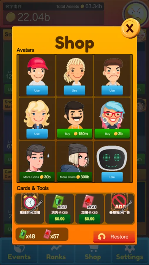 Pocket Tycoon is an idle clicker that let you build up your business kingdom from scratch and become the fastest money maker in the world. You starts with only 50 coins and a simple snack bar, and make it all the way up to a car company, plane factory and finally a super oil field. Sounds easy right? Well it's not, because there are so many of you doing the same thing - trying to be the world's top coin maker. So, let's hurry up!