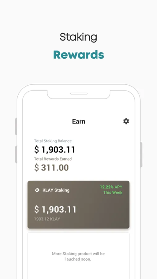 • Staking 'Rewards' - the most basic Defi PoS staking is a feature that allows you to stake your crypto assets on verified nodes and receive weekly rewards. All processes are executed in a decentralized form by smart contracts. Currently it supports Klaytn public blockchain network.