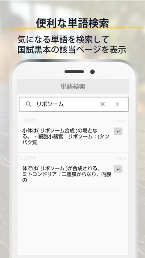 国試黒本の中から、該当する単語を検索してページを表示することができます!