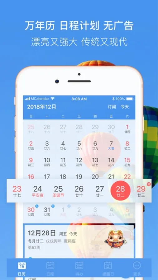 日历:包含日历、万年历、农历、中国节假日、国际节日等;
