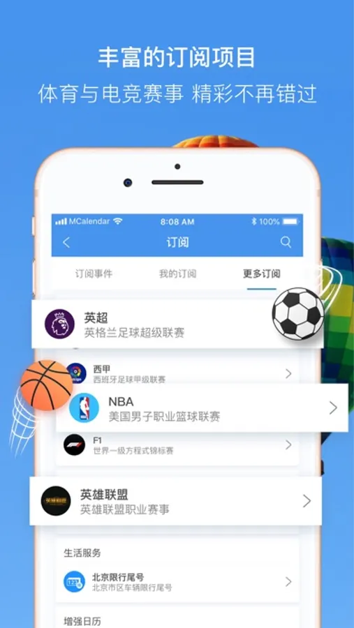 订阅:体育(西甲、英超、F1等)赛事订阅,北京限行订阅;