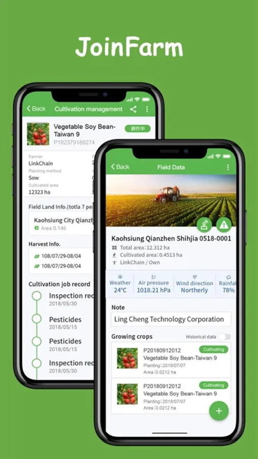 JoinFarm is a smart production management system. The system assists the agribusiness to run their farms through useful filed and crop management functions. And to reach the target for best quality and quantity produce result. Meanwhile, realize the traceability.