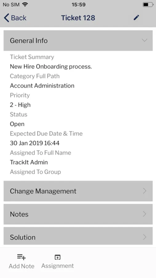 This mobile application provides helpdesk technicians access to BMC Track-It! to review assigned requests, submit requests, and update requests. This also enables technicians to search through the knowledge base to find out solutions for issues being reported.