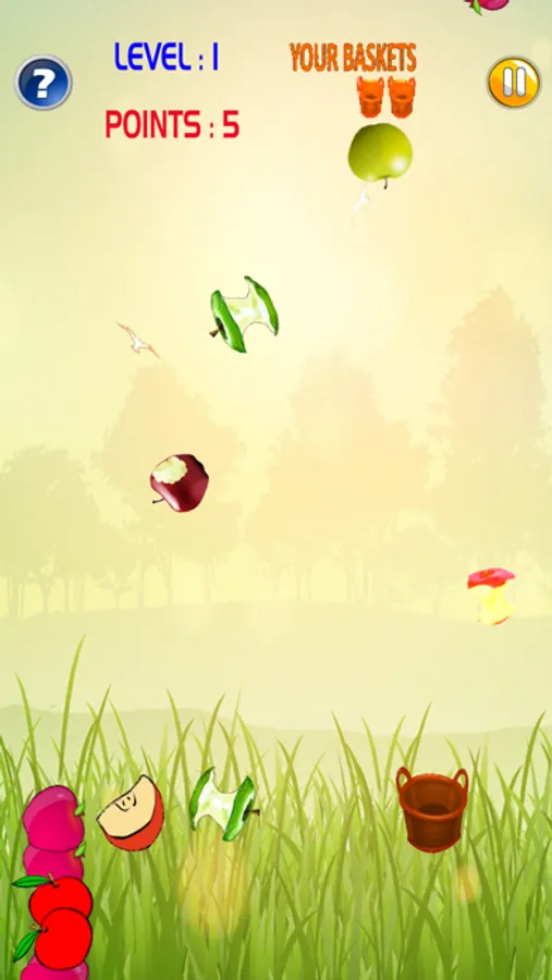 Catch your apple is an arcade game. Your goal is to collect all the falling apples in the basket. They will form a stack, and when the stack is full you will be promoted to the next level. Remember to collect only beautiful healthy apples. Avoid the worm apples, the apple cores and the chewed ones. Do not collect animals into the basket.