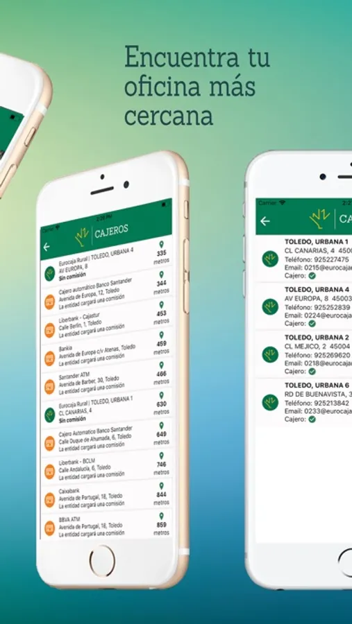 La opción oficinas muestra las oficinas de Eurocaja Rural