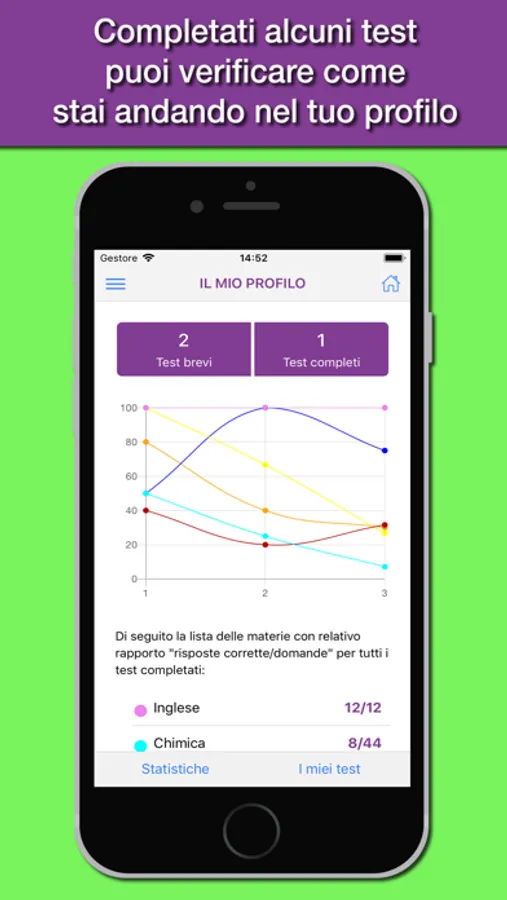 Once you have completed a series of short or complete tests, you can access your profile and visually check the progress of your preparation and deepen the topics of the tests by viewing the commented answers.