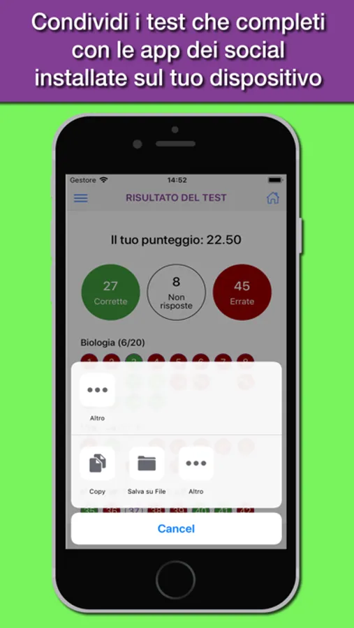 The app is designed to simulate as close as possible the test you actually have to deal with, with all the topics of the test: biology, chemistry, mathematics and physics, logical skills, general knowledge, English.