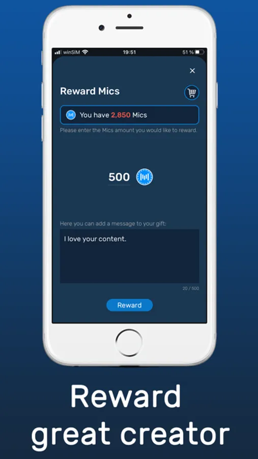 Reward your favourite creator now or get rewards from your fans. With the new mycrocast Mics program you can earn virtual coins or give them to others. Simply exchange the Mics for real money and earn money with your content.
