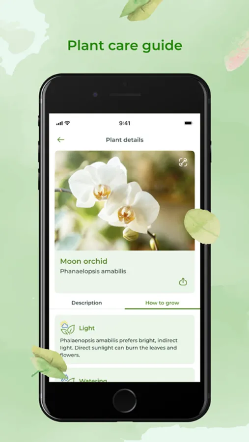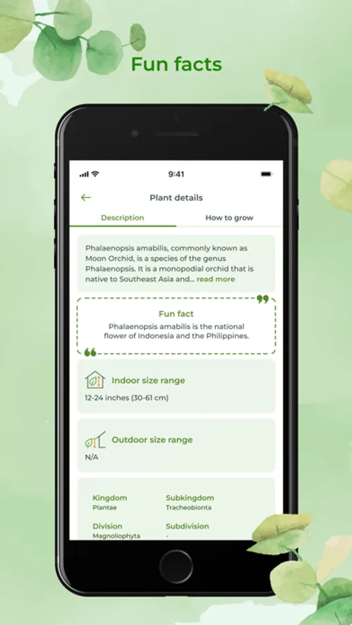 After identifying plants, you will have information about its taxonomy and a complete description about the plant, orchid, indoor plant, ornamental plant, exotic flower and more. PlantSnap also tells you how to care for and grow plants.