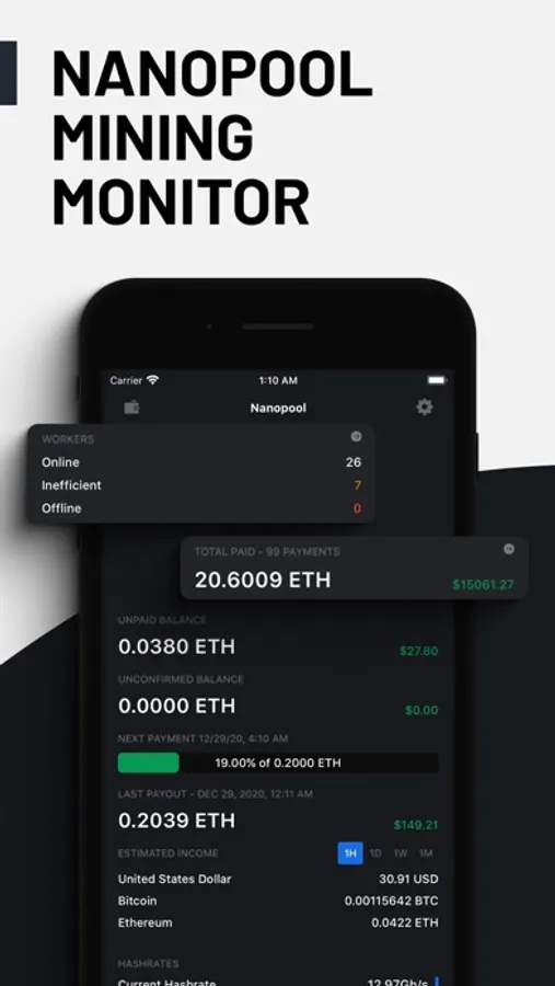 These are some of the great features Nanopool Mining Monitor has to offer: