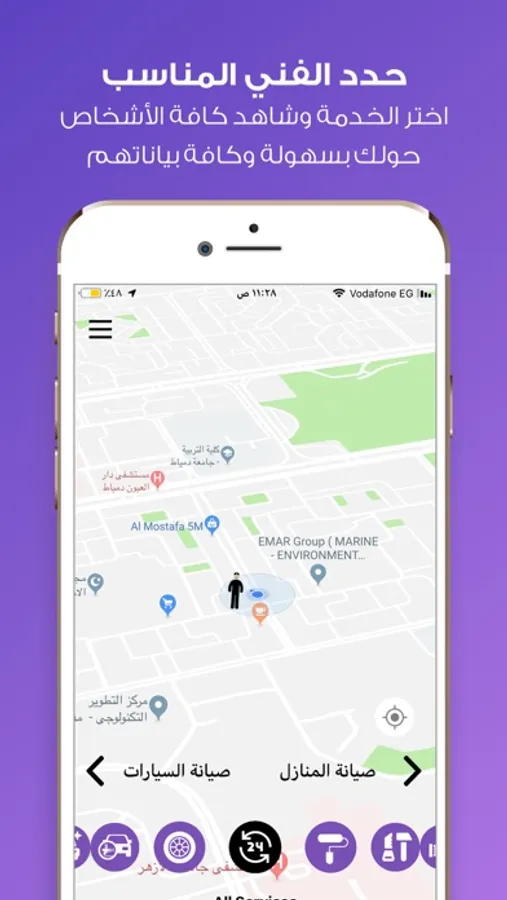 2– حدد تصنيف الفني وشاهد اقرب الفنيين لمكانك عن طريق الخريطة بسهولة.