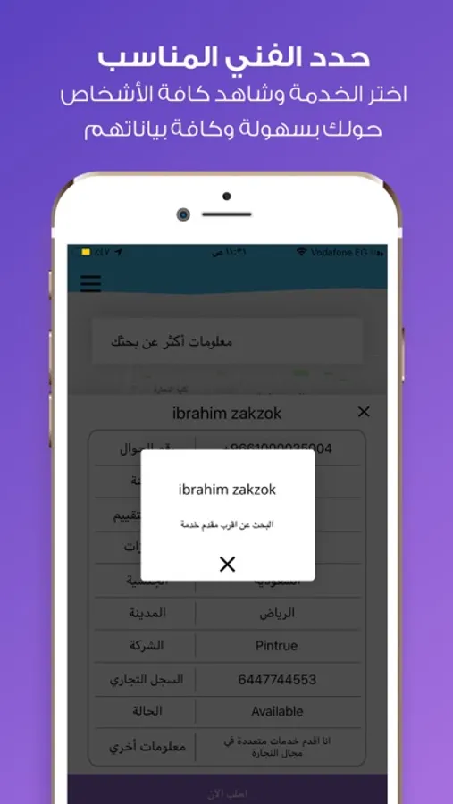 3– شاهد بطاقات الفنيين وجميع البيانات الخاصة بهم وحدد الفني المناسب.