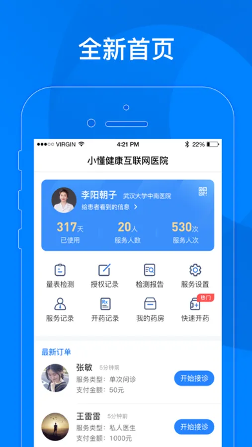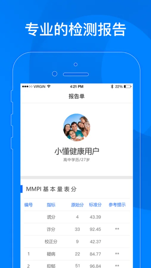 小懂健康是一款非常好用的患者随访管理工具,全国众多的心理医生都在使用。为什么要使用小懂健康?精神心理疾病的核心问题是居高不下的“误诊率”和“复发率”。大数据和人工智能技术的日臻成熟,为精神心理疾病的辅助诊疗带来的新机遇。公司产品利用大数据、人工智能技术建立诊疗模型,有效提高了精神心理疾病的诊疗水平。传统问诊模式下,精神障碍识别率仅在50%左右,治疗后三年复发率超过80%。我们创新的运用“技术+数据+服务”的模式,为医生赋能,使诊断正确率 提升到90%以上,三年复发率降低到30%左右。