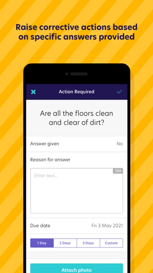· Increase business visibility and manage any necessary corrective actions, with a photo upload feature to track defects