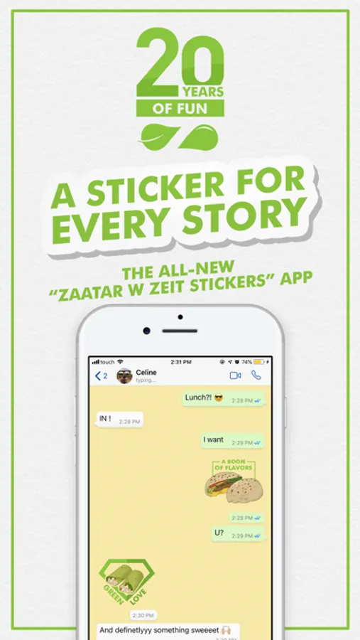 Make your conversations extra tasty! Express yourself with Zaatar w Zeit stickers.