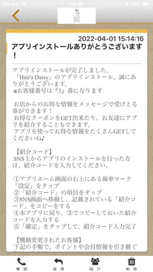 また、お店からメッセージが届くので、いつでも最新の情報がご確認いただけます。