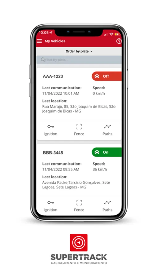 A SuperTrack permite que você monitore os veículos rastreados pela SuperTrack.