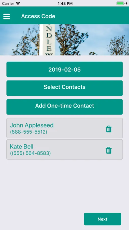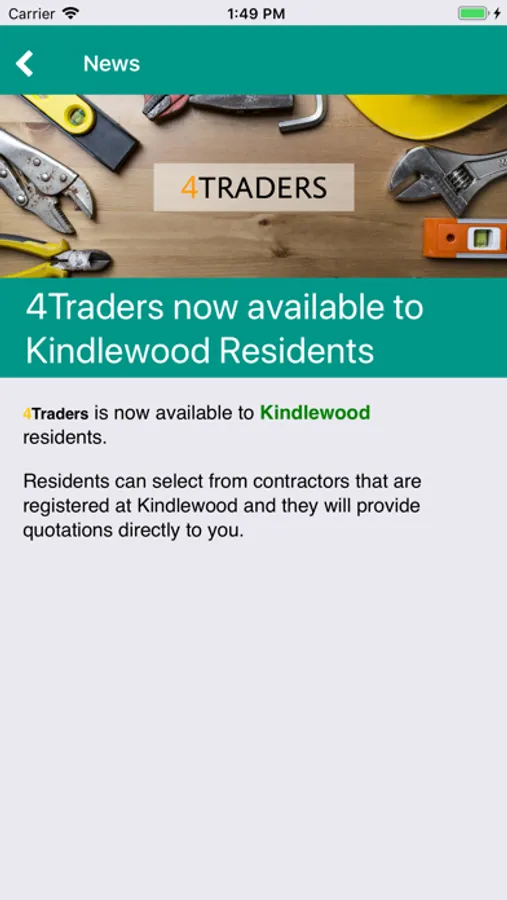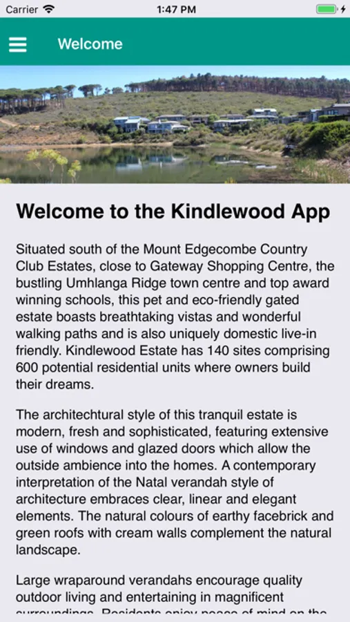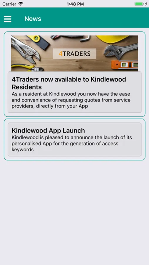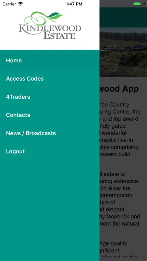 Kindlewood Resident's App for the generation of access codes and access to estate news broadcasts.