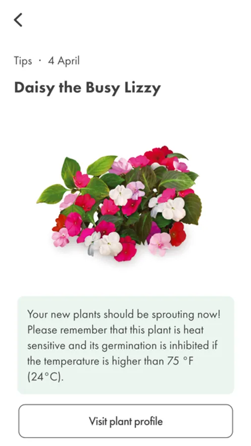 Add plants to your gardens and receive timed tips throughout the growth cycle of your plants.