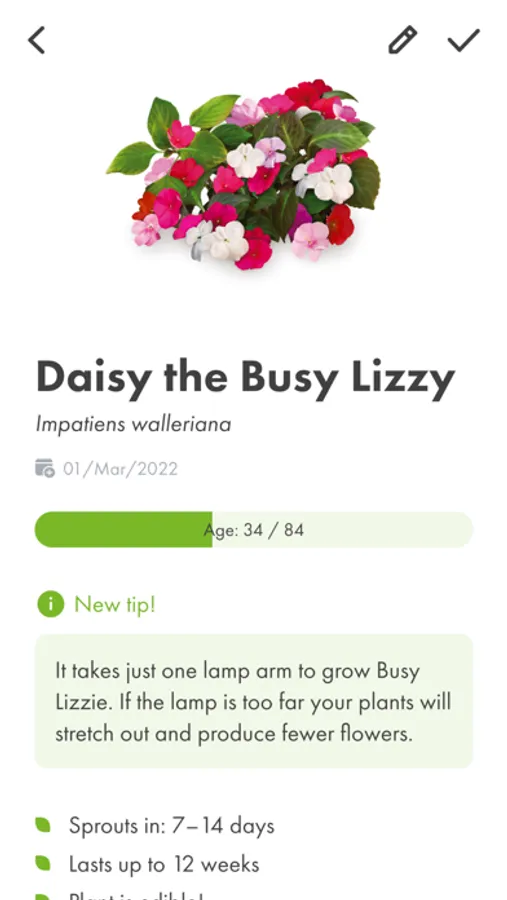 Access to the essential information of each plant (sprout time, growth temperature, ...) and add your own notes.