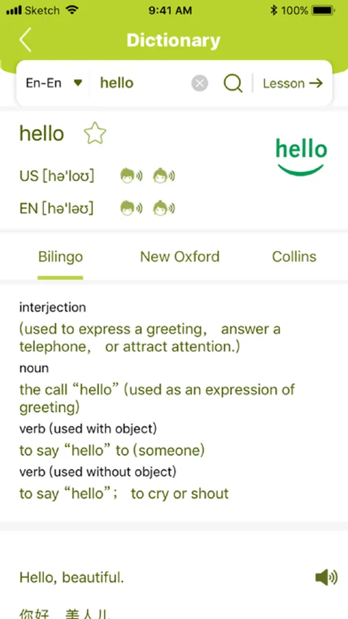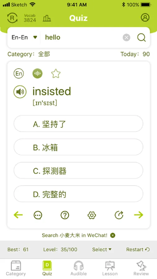 6. The rest: vocabulary counter,human pronunciation in US or UK accent and male or female voice, and optional bilingual layout