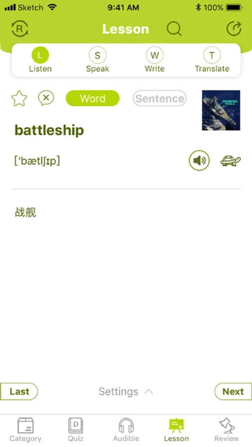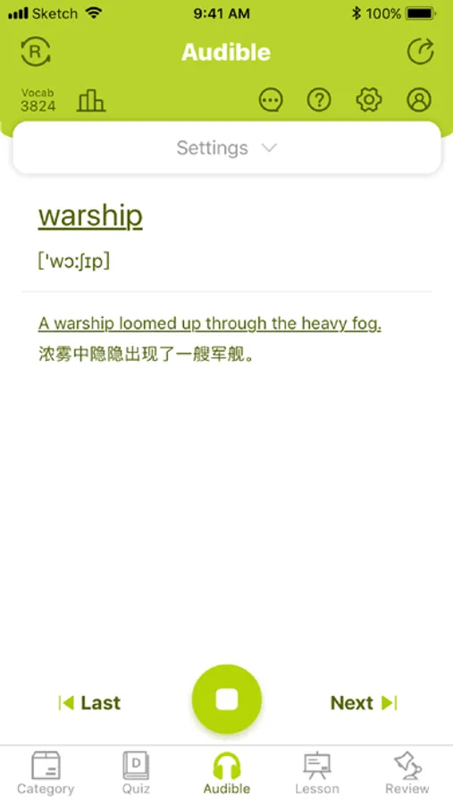 3. Audible: listen to words, definitions and example sentences even with locked screen