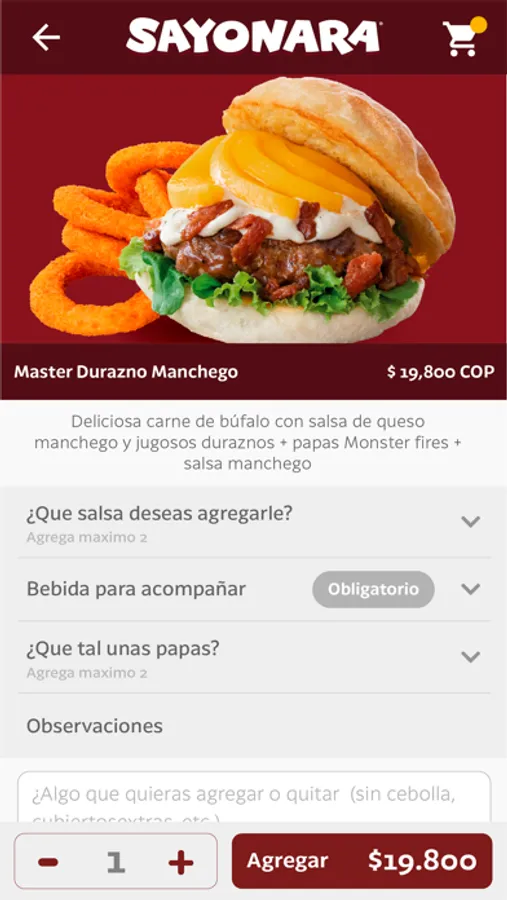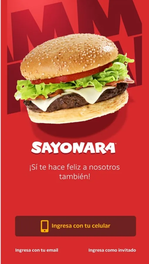 Descarga la app Sayonara sin costo y pide tu domicilio para que disfrutes de todos tus antojos a un click de distancia sin esperas o retrasos innecesarios, simplemente escoges lo que más te gusta y lo enviamos para que disfrutes las mejores hamburguesas al carbón de la ciudad, deliciosas ensaladas, burritos vegetarianos, fresas con crema, malteadas o tortas, mientras ves tu película favorita o trabajas desde la oficina, incluso si lo que quieres es ganar tiempo mientras llegas a recoger tu pedido o quieres comerlo en el restaurante pero vas de mucho afán, solo dinos lo que quieres y lo vamos preparando. Es muy simple... descárgala ya y empieza a disfrutar lo que tenemos para ti, porque si te hace feliz a nosotros también.