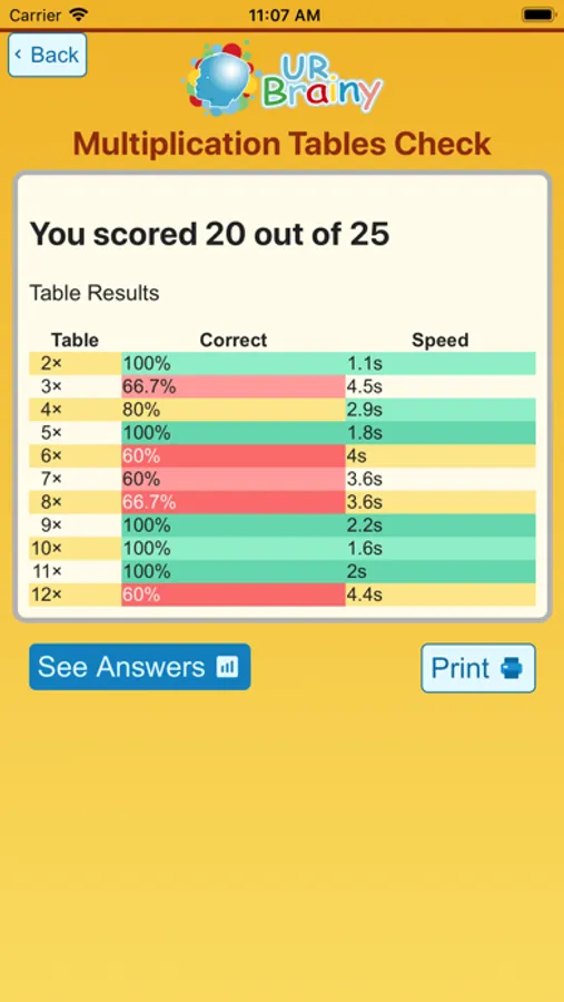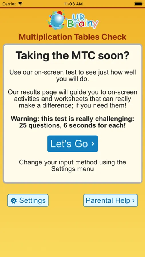 There will be 25 questions with 6 seconds to answer and with a 3 second gap between questions. We also follow the exact specification on the minimum and maximum number of questions taken from each times table.