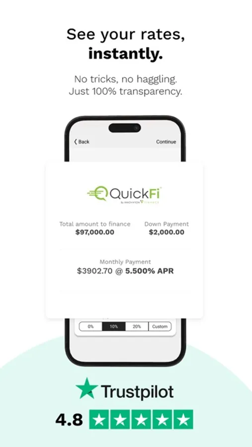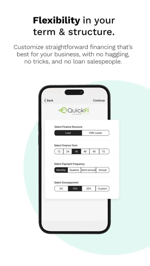 QuickFi offers low, fixed rate term financing with no hidden costs. With QuickFi, there's no need to speak to an equipment financing salesperson. Features of the QuickFi application include: