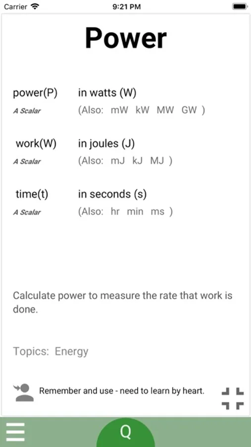 Get this app and have a virtual pack of index cards always at your fingertips. All the important information is there, including the units.