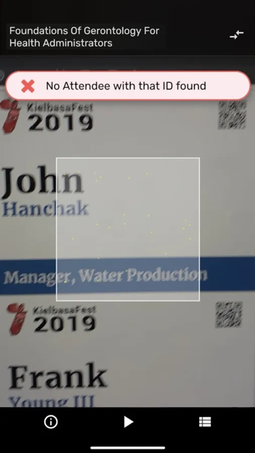 Administrators can use our online web app to create events, add sessions, and identify how many credits are available for each session. Nametags can then be generated, each containing a unique QR Code which administrators can scan via the mobile app to confirm attendance.